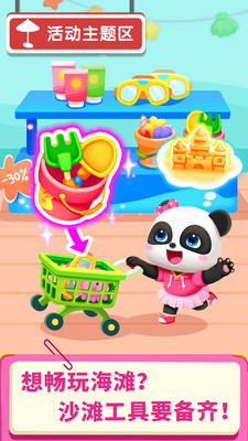 每次采购都有不同“任务”,宝宝要根据购物清单进行选购,学会按需采买。宝宝还能宝宝前往“阳光海滩”主题区,选购沙滩玩具、泳衣泳圈等海边装备。